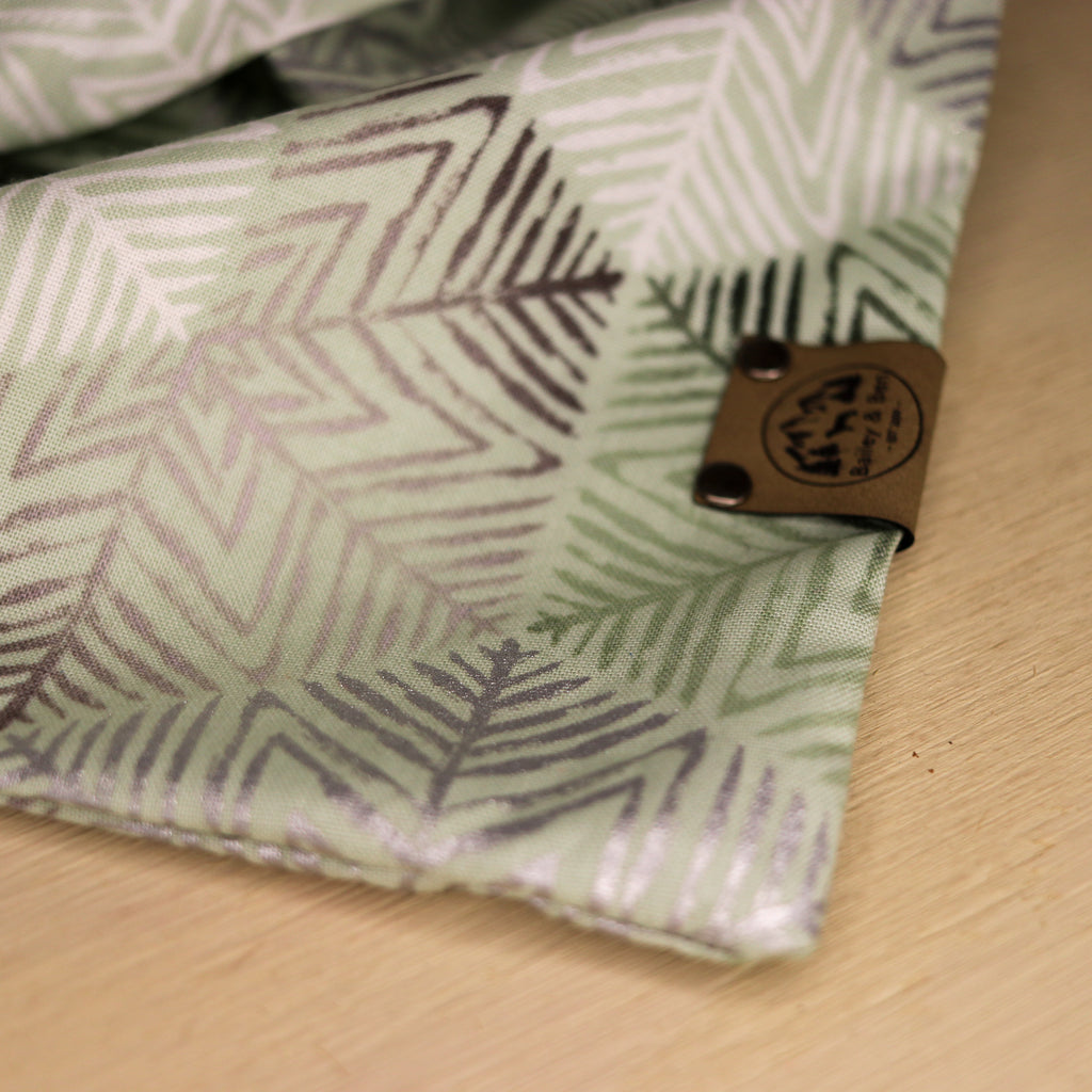 Our bandanas are a traditional triangle shape with no snaps that may break or rust. Our bandanas can be rolled across the top to adjust the length and tied onto your pet for a perfect fit. Please measure your pets neck before ordering to make sure you snag the right size.