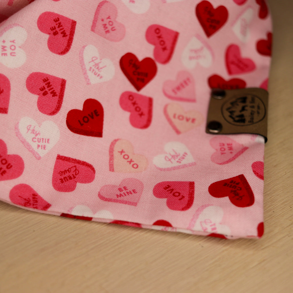 Our bandanas are a traditional triangle shape with no snaps that may break or rust. Our bandanas can be rolled across the top to adjust the length and tied onto your pet for a perfect fit. Please measure your pets neck before ordering to make sure you snag the right size.